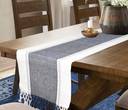 CRAZYWEAVES White, Blue 182 cm Reversible Table Runner (Cotton)