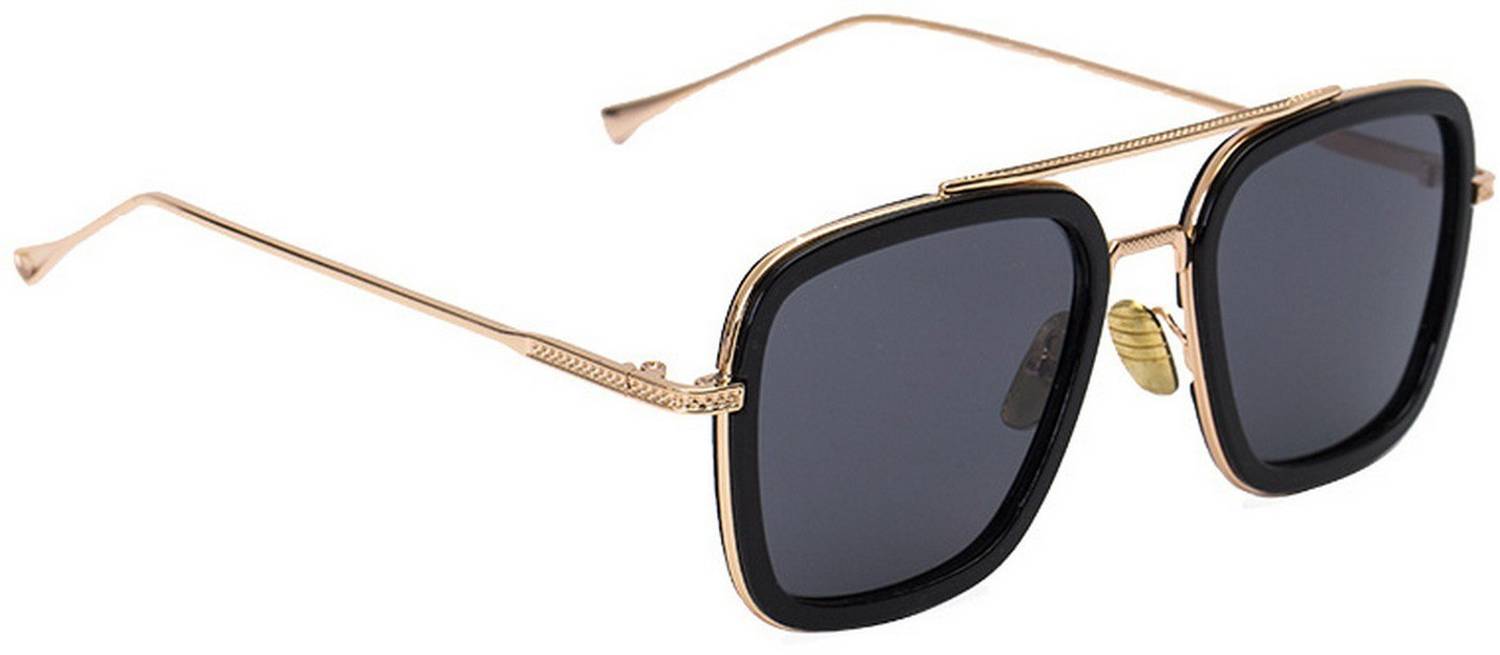 Crazywinks Retro Square Sunglasses (For Men & Women, Golden, Black)