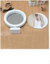 This magical mirror is circular in shape and its diameter and the radius is 20 cm which fits the photo has this dimensions. This magical mirror will turn in to photo frame when it connects with electricity yes. If you plug this into socket the mirror will dim with LED lights it is also used as the lamp at the night times. You can connect this through a USB cable which includes adopter on its end. Once the cable is connected it will start glowing, when it switched off it will convert in to mirror. Where you can see your face do make up.