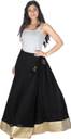 Give a fashionable twist to your ethnic look by wearing this Black coloured skirt from Crease & Clips. Tailored from Georgette, this flared skirt features a voguish design with With the Golden Patch Border. this skirt looks trendy and sexy too ,skirt will offer lightweight comfort all day long Team it with an ethnic top and matching belly shoes for a lovely look.