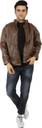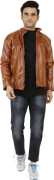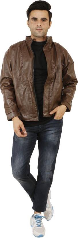 This stylish regular fit jacket in the display has full sleave and stand collar. Inside one pocket and branded zippers, this faux leather jacket is light in weight and will ensure cofort all time.