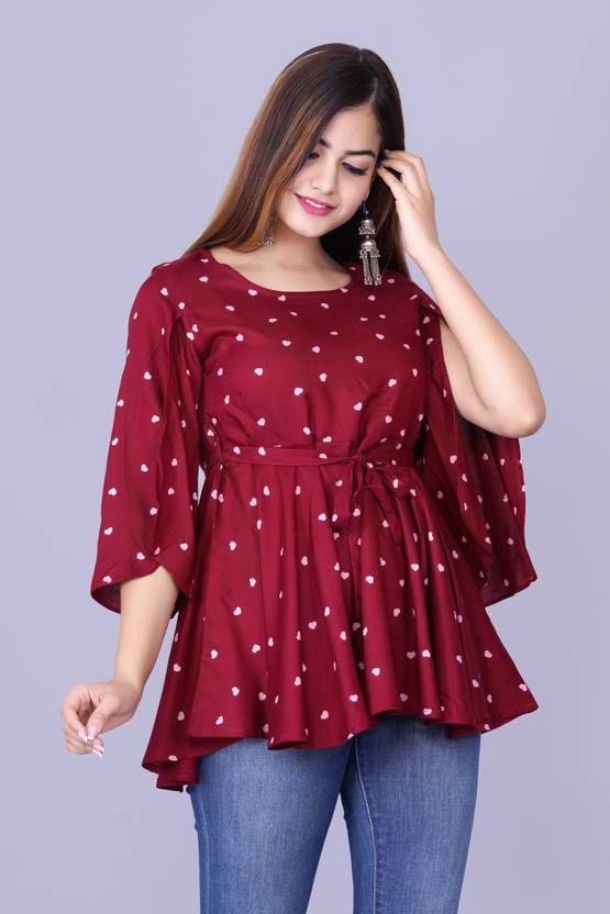 CREATIONESH Casual Floral Print Women Maroon, White Top