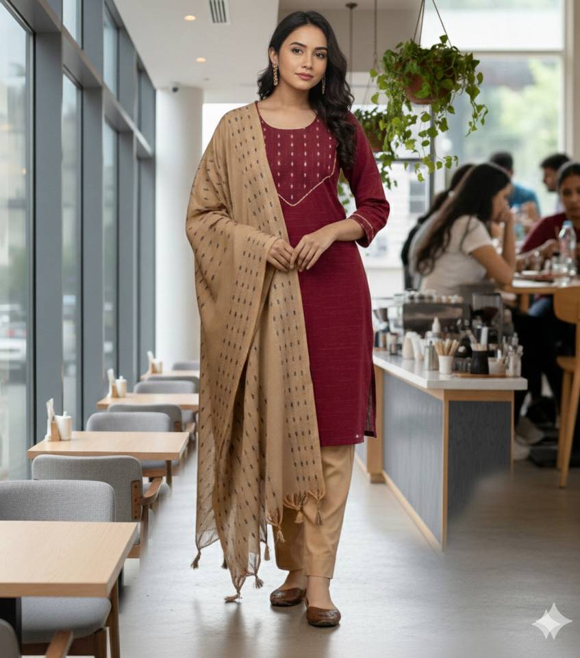 An amazing range of women's ethnic wear in soft and solid colors that looks perfect for regular wear. With beautiful designs and patterns. These apparels are very stylish and comfortable too. Get rid of the 'regular' look this season wearing Kurta Sets With a perfect blend of comfort and traditional style.