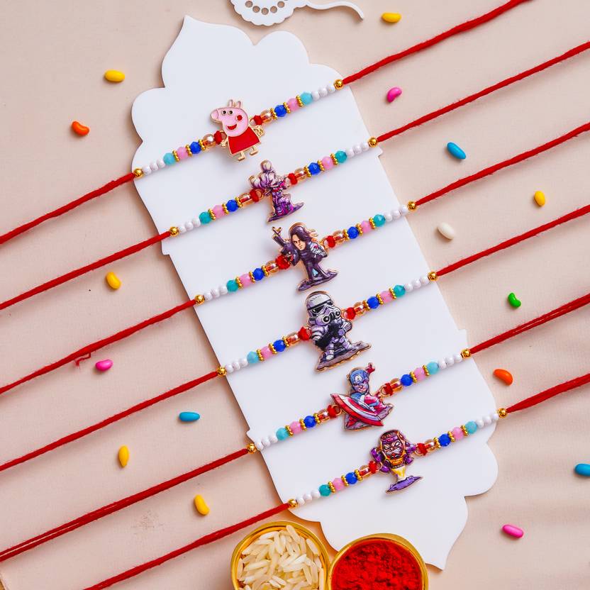 Pack of 6 Cartoon Charactor RAKHI WITH ROLI CHAWAL