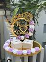 Creative Horizon Artificial Flower Design Engagement Ring Tray Platter, Name Plate with Date Wood, Plastic Decorative Platter (Multicolor)