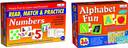 1."Alphabet Fun"-An Innovative way to learn and master letters of the Alphabet and their sounds. "Read, Match & Practice"- A 3 in 1 pack to learn & master number skills. includes a boards book to count and recognize numerals. 2."Read, Match & Practice Numbers" is a 4 in 1 pack to learn and master number skills by reading, counting, matching, sequencing, practicing and writing. The game comprises a Board Book, an Activity Guide and 10 sets of three piece match-ups and two sequencing puzzles.