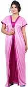 What better way to feel right at home than to do so in this luxuriously soft nighty. Cut out of satin, with a cotton lining to add to its appeal, this nighty is perfect for both casual and special nights. You can always cover yourself up with the robe that comes with it, when you need to pick up the newspaper in the morning.