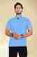 swishly fashion Men Solid Mandarin Collar Cotton Blend Light Blue T-Shirt