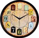 plastic wall clock Analog 26 X 26 CM Wall Clock for Home/Living Room (Plastic , Quartz , 7 Stone , Gray Wooden Touch ) (Multicolor, With Glass)