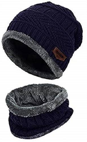 Winter Beanie Cap Soft Fur Insulated Inside with Fur Neck Warmer