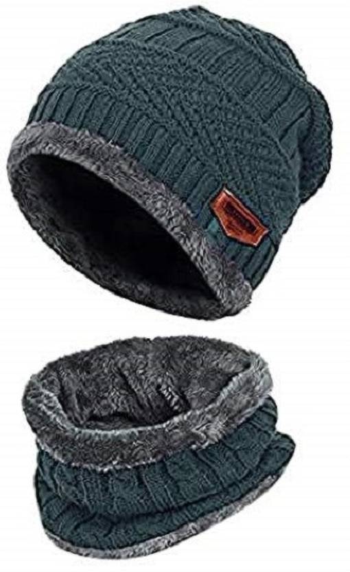 Winter Beanie Cap Soft Fur Insulated Inside with Fur Neck Warmer