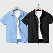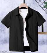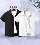 Cresale Boys Self Design Casual Black, Blue Shirt