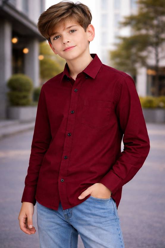 Cresale Boys Solid Casual Maroon Shirt