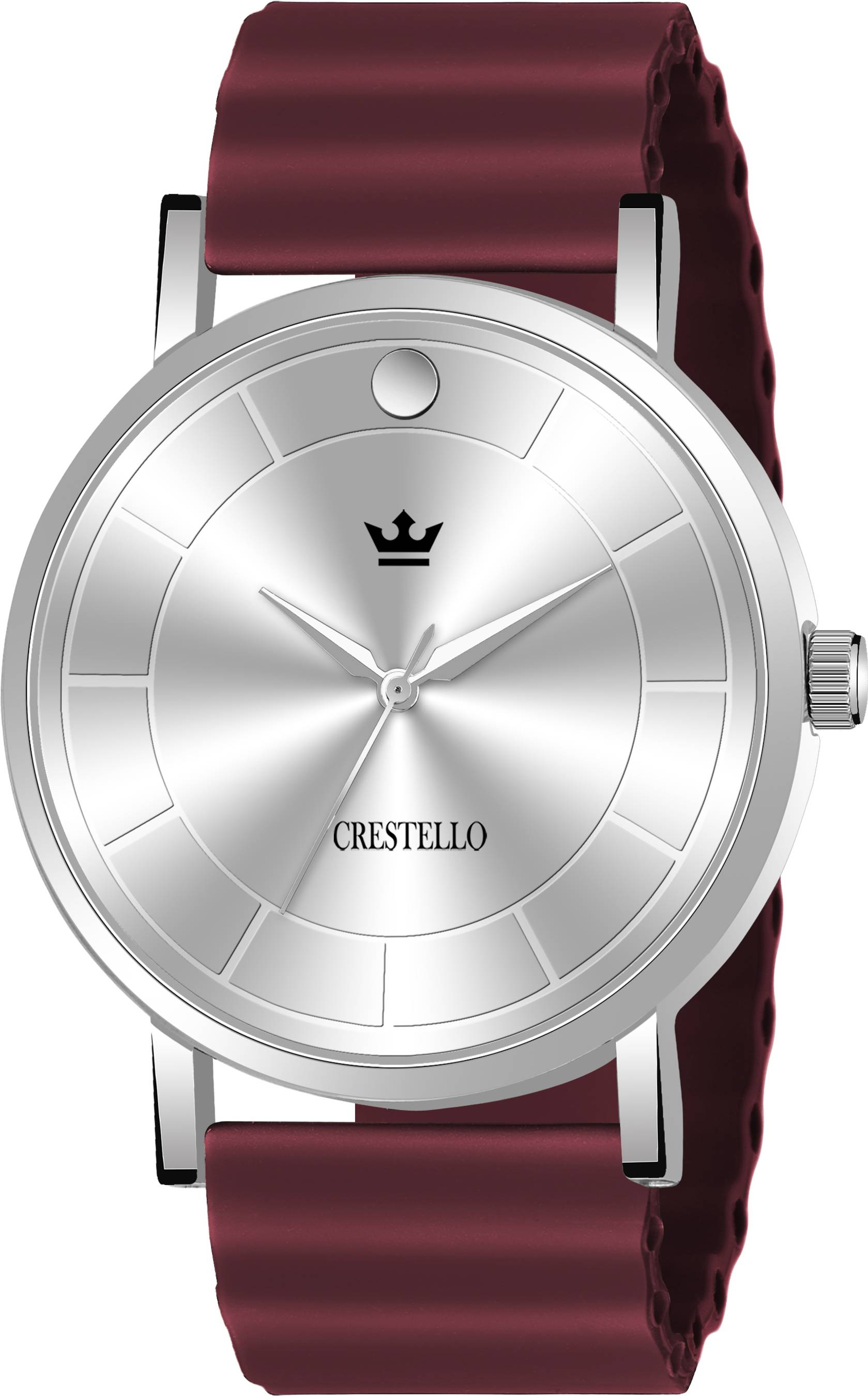 Elegant & classy wine-red silicone strap analog wrist watch for Men from the house of Crestello. High quality silicone strap perfectly complements the chrome case and makes this watch an attractive time-piece for your collection.
