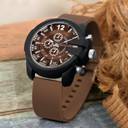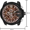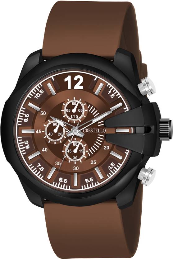 Stylish and heavy metal brown silicone strap analog wrist watch for Men from the house of Crestello. High quality silicone strap with black buckle perfectly complements the big black case and makes this watch an attractive time-piece for your collection. The chronograph on the dial is dummy and is only part of the design of the dial.