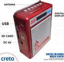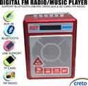 Creto Portable FM Radio Player loaded with Bluetooth with Mic calling, USB,TF Card & rechargeable battery with upto 8 Hours of backup. Product Feature: Powerful FM Radio Reception Digital FM Tuning Select Radio Stations with Bluetooth 4.0 with built in Mic Support TF card USB Playback for Mp3 Aux Mode LED Display indicates FM Frequency.