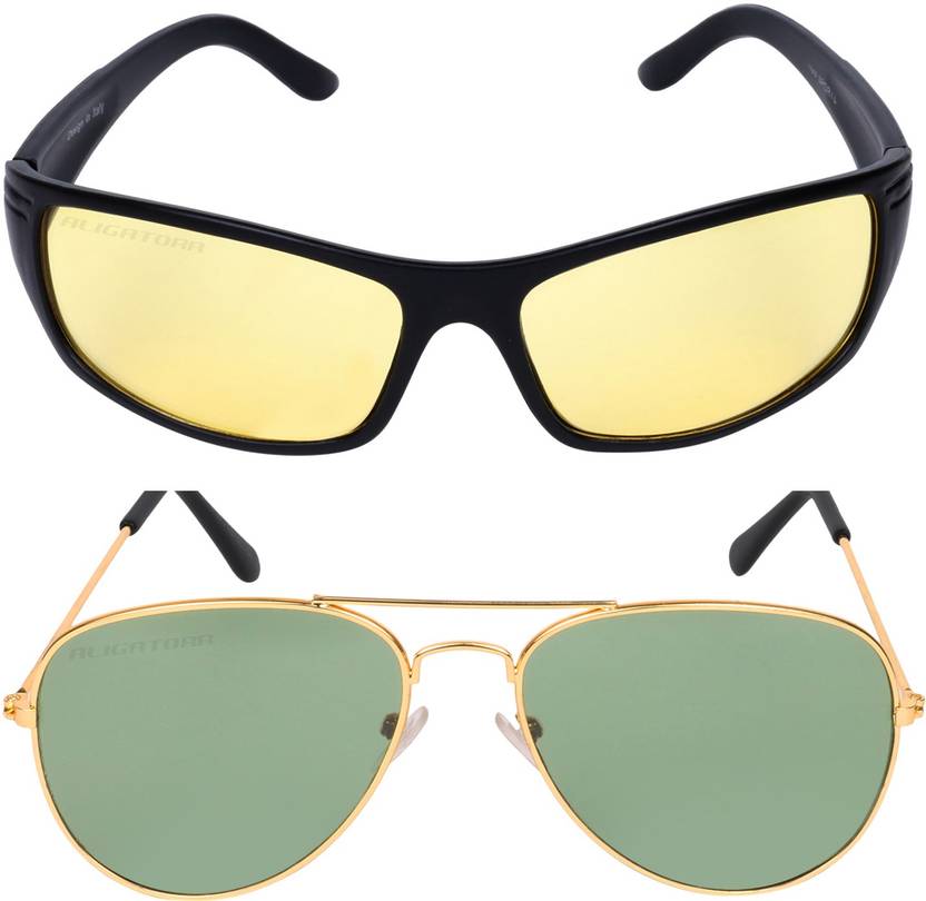 UV Protection Aviator, Retro Square Sunglasses (Free Size) (For Men & Women, Yellow, Green)