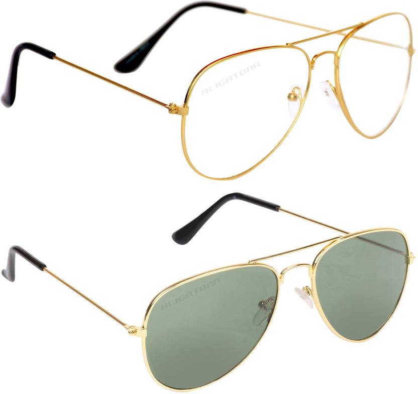 UV Protection Aviator Sunglasses (Free Size) (For Men & Women, Clear, Green)