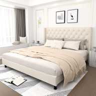 CRIGE Fabric King Size Bed For Hotel, Bedroom Engineered Wood King Bed (Finish Color - Black Waylen Finish, Delivery Condition - DIY(Do-It-Yourself))