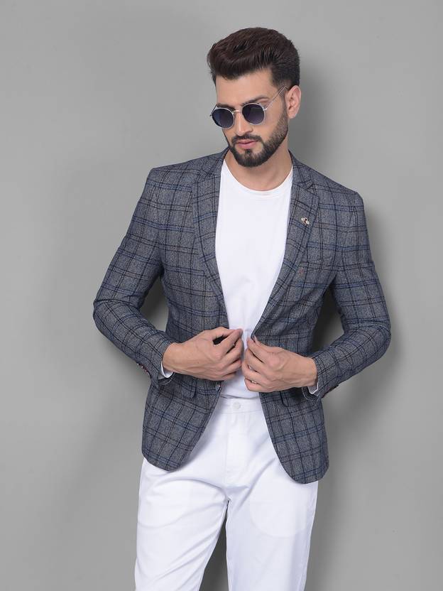 CRIMSOUNE CLUB Checkered Single Breasted Casual Men Blazer (Grey)