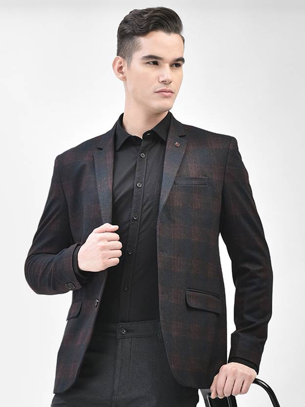 Crimsoune Club Men's Brown Checked Single Breasted Blazer