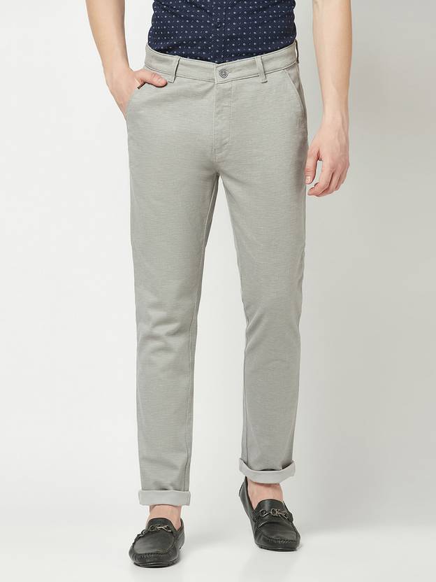 CRIMSOUNE CLUB Men Slim Fit Grey Cotton Blend Trousers