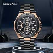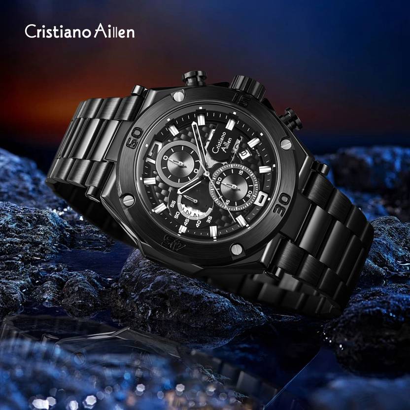 Command attention with the Cristiano Aillen Chronograph – Model CA-9839, a bold all-black men’s luxury watch that redefines contemporary style.