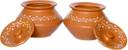 This set of two traditional handis are designed in the form of traditional earthen pots. The white dots are conventionally made with a rice preparation. This set of pots represents the handicraft of the stone artists of Khurja. Now, rural is the new urban!