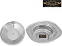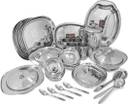 his Is A High Qualtiy Laser Finish Dinner Set Compatible For Nuclear Family Of Four People. Weight of Dinner Set is 10 kg 6pcs Full Plate; 29 cm, 410 Gm Each, 6 pcs Half Plate; 19 cm, 200 gm Each, 6 Bowl; width 11cm height 6 cm, weight -100 gm each, 6 Glass- Height 11 cm, Width 7 cm, Weight- 120 gram each 6 Square sweet dish- width 11 cm , height 3 cm, 1 Big tray- length 37 cm, width 22cm, Weight 500 gm, 1 Salad tray- length 28 cm, width 22 cm , weight 270 gm, 1 jug with lid- Height 20 cm Width 12 cm weight 600 gm 1 Square donga big with lid- width 24 cm height 9 cm, weight 550 gm, 2 Square donga Medium with lid- width 23 cm height 8 cm, weight 450 gm Each One Rice Spoon 100 gm, Two Donga Spoon 80 gms, Baby Spoon 12 pcs