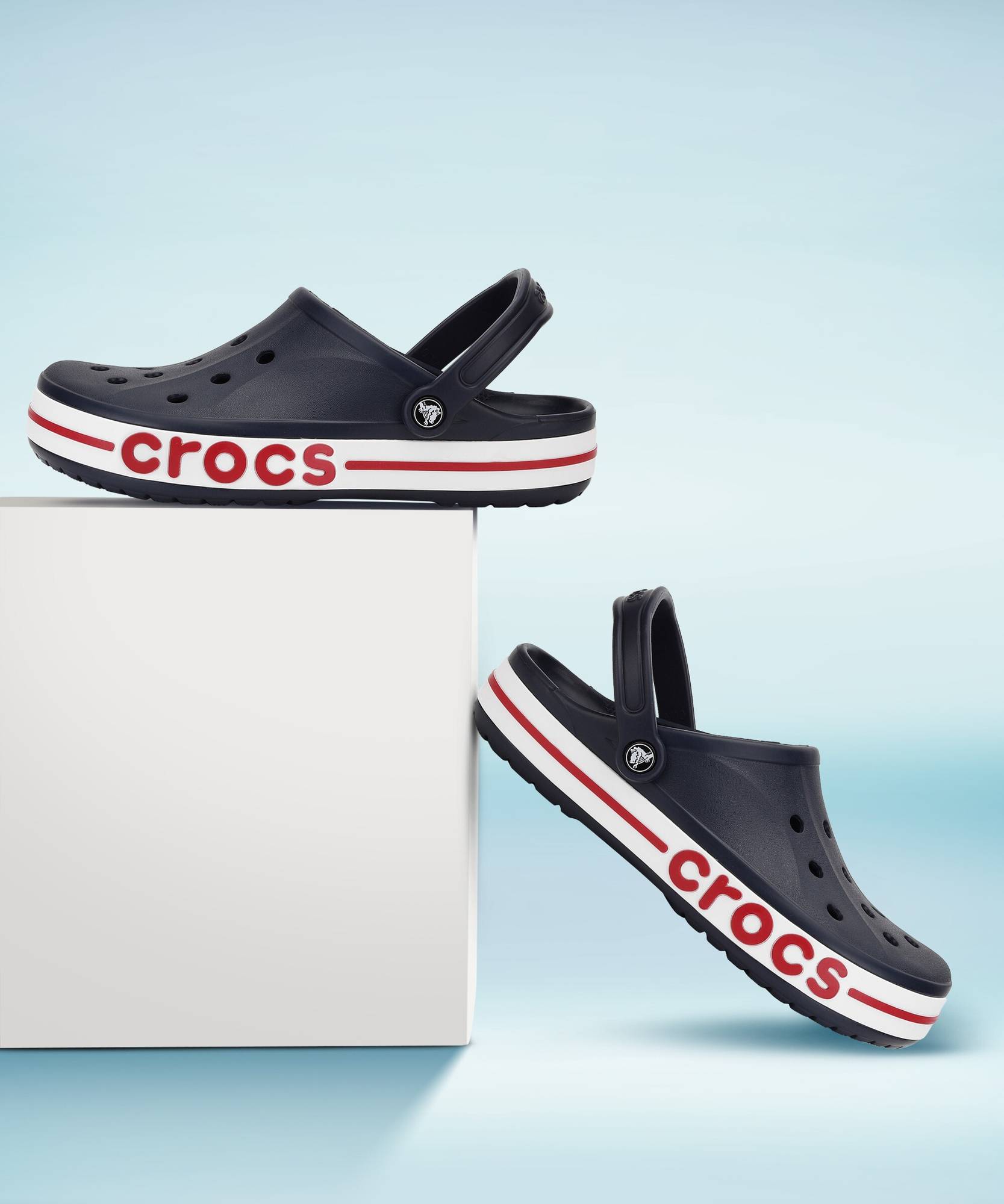 • Bold Crocs logo wraps from side band to upper