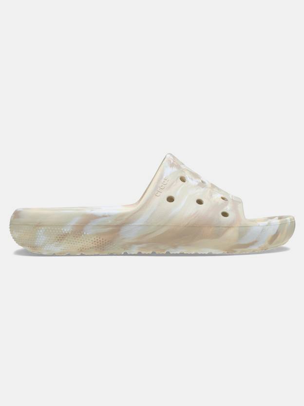 Introducing our new and improved Classic Sandals Collection! Building on bold simplicity and versatility, we’ve updated the products’ most important aspects: the fit, feel, and look. The updated, modernized silhouettes now cup the whole foot in our Iconic Crocs Comfort™ allowing you to sink even more into whichever style you choose. And we didn’t forget about personalization. We kept the holes in each of our three sandals because Jibbitz™ charms allow you to put your personality on full display. This Slide version features our marbled Croslite™ material that creates a unique colorful effect. While all marbled shoes have the same wavy look, no two shoes are exactly alike.