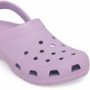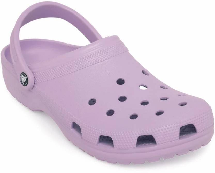 A pair of purple clogs Croslite upper with slip-on closure Cushioned footbed Patterned croslite outsole Warranty: 3 months Warranty provided by brand owner/manufacturer