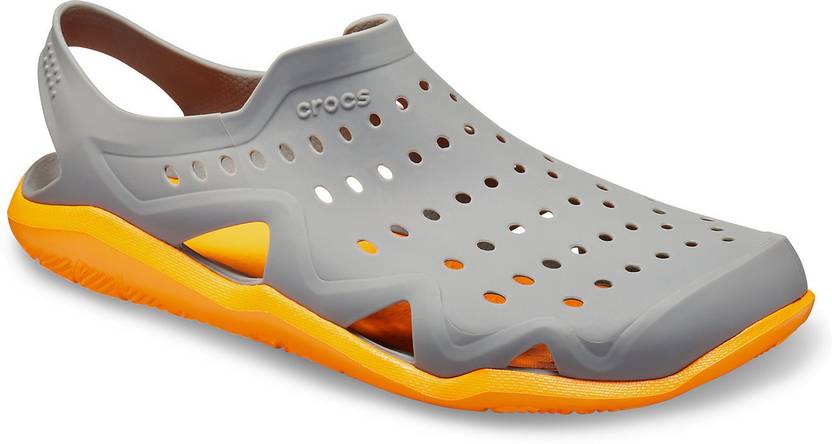 Athletic. Ambitious. Adventurous. Amphibious. Our most active, water-friendly shoes to date feature siped outsoles to channel water away and improve traction. Durable but soft perforated uppers offer maximum breathability and drainage, and a fixed heel strap keeps you strapped in. Ride the wave. The river. The waterpark. Anywhere you like to make a splash. Mens Swiftwater Wave Details - Lightweight, all-purpose sandal, Croslite foam construction wont absorb water, Iconic Crocs Comfort soft and supportive