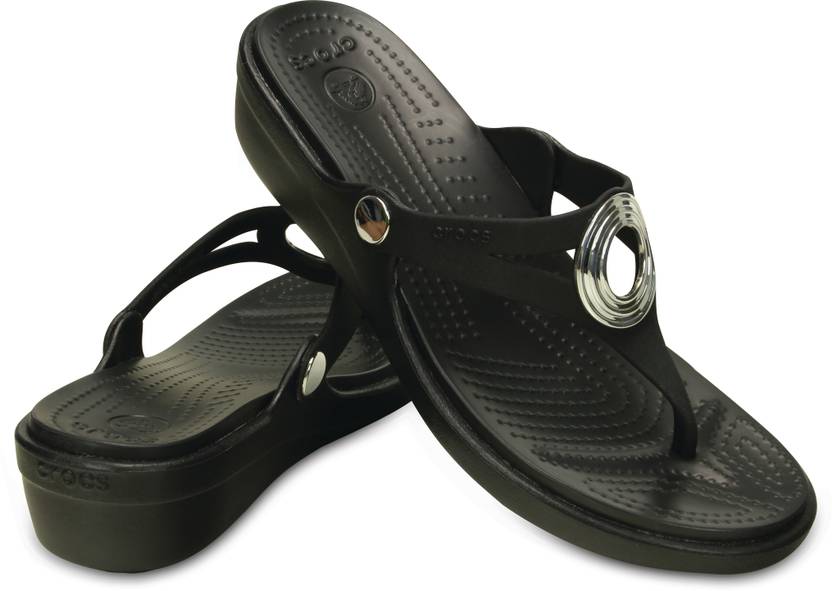 CROCS Women Sanrah Beveled Circle Wdg Flip Flops (Black , 9 UK/India)