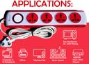 Experience seamless connectivity and enhanced convenience with the Crompass Extension Board, designed to meet your everyday power needs with safety and style. Equipped with four universal sockets, this extension board supports a wide range of plug types, allowing you to connect multiple devices at once without the hassle of adapters.