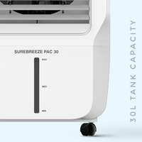 Featuring a robust air delivery of up to 2,000 cubic metres per hour, the Crompton ACGC-SUREBREEZE30 30 L Personal Air Cooler is ideal for rooms up to 22.29 square metres (240) in size.