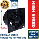 Finish | - Exhaust fan with automatic shutter Kindly refer the scaling image for information on the product dimensions Sleek and stylish design Rust proof body and blades Noiseless and light in weight Warranty: 1 year on product Power: 40 watts; Operating voltage: 230 volts, Sleek and stylish design, Rust proof body and blades, Noiseless and light in weight, LIGHT WEIGHT PLASTIC BLADES, 100% COPPER WINDING, COPPER WINDING, High air delivery of 205 cubic meter per minute Highly reliable motor due to 100 percent copper winding motor Sealed double ball bearing for life time maintenance free performance Sweep (mm): 150 mm, power input (w): 24, air delivery (cubic meter per minute): 205High air delivery of 205 cubic meter per minute Highly reliable motor due to 100 percent copper winding motor Sealed double ball bearing for life time maintenance free performance Sweep (mm): 150 mm, power input (w): 24, air delivery (cubic meter per minute): 205