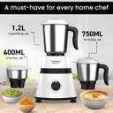 The three-speed inbuilt pulse switch provides better grinding control with flexibility and precision for various operations from chopping to mixing.