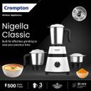 Crompton Nigella Classic 500 W Mixer Grinder (ACGM-NIGELLA-CLX | 3 Jars | Black and White)