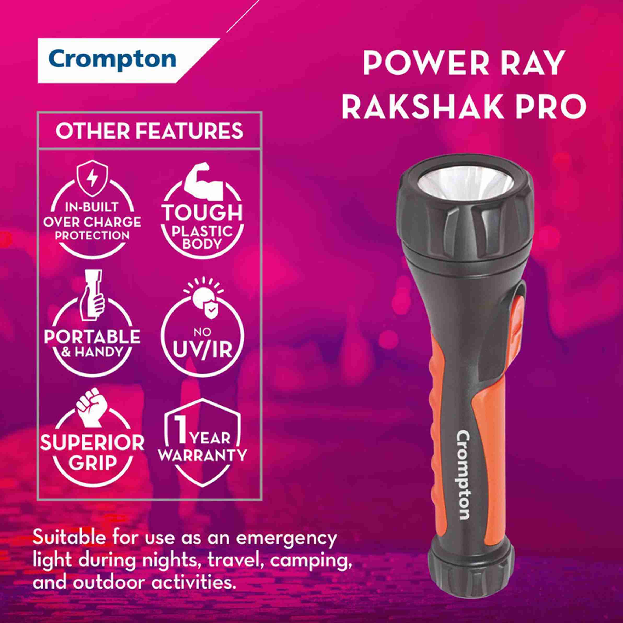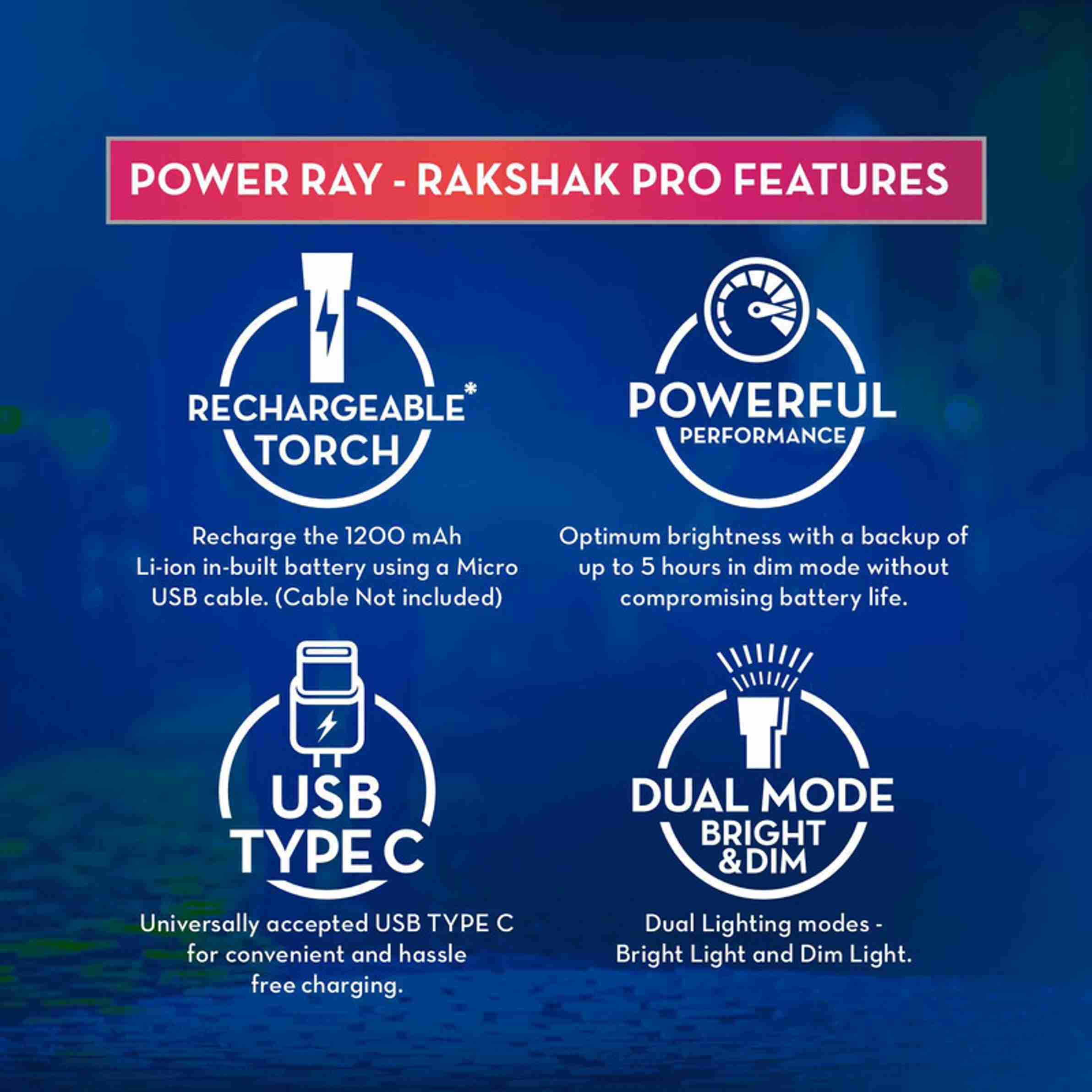 Pack of 1 Power Ray Rakshak Pro Torch (Black, Orange, 19.7 cm, Rechargeable)