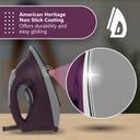 Due to its American Heritage non-stick soleplate, this sturdy dry iron can be used on even delicate fabrics easily. You can iron anything, from casual clothes to designer partywear clothes, using this iron.