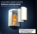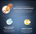 The Anti-scale technology effectively combats hard water, withstanding up to 2000 ppm, for consistently long-lasting heat.