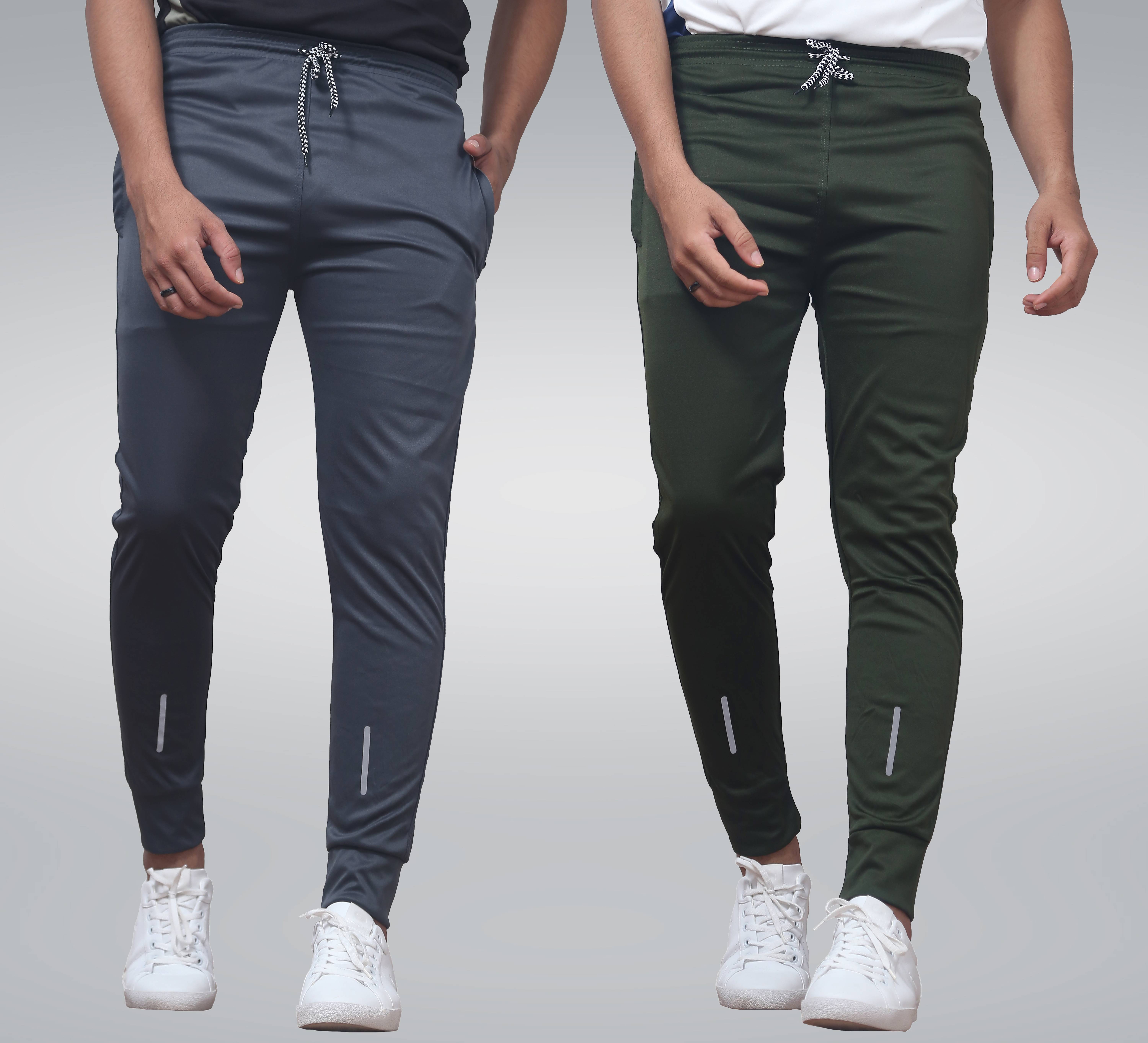 1 Dark Grey Track Pant, 1 Military Green Track Pant