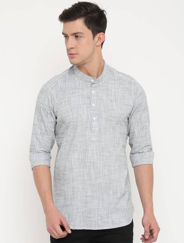Men Solid Pure Cotton Straight Kurta (Grey)