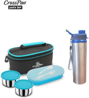 CrossPan Double Decker Executive Stainless Steel Lunch/Tiffin Box/Pack 3Containers (Blue)+ Sleek Water Bottle (600ml) 3 Containers Lunch Box (1000 ml)