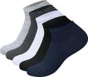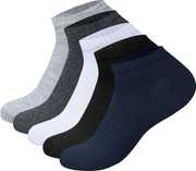This Pack of 5 Premium Ankle-Length Socks is designed for both men and women who want everyday comfort with durability. Made with soft cotton-blend fabric, these socks provide excellent breathability, moisture control and all-day cushioning. The ribbed elastic cuff ensures a secure, non-slip fit, making them ideal for office wear, casual use, gym and sports.