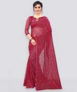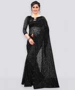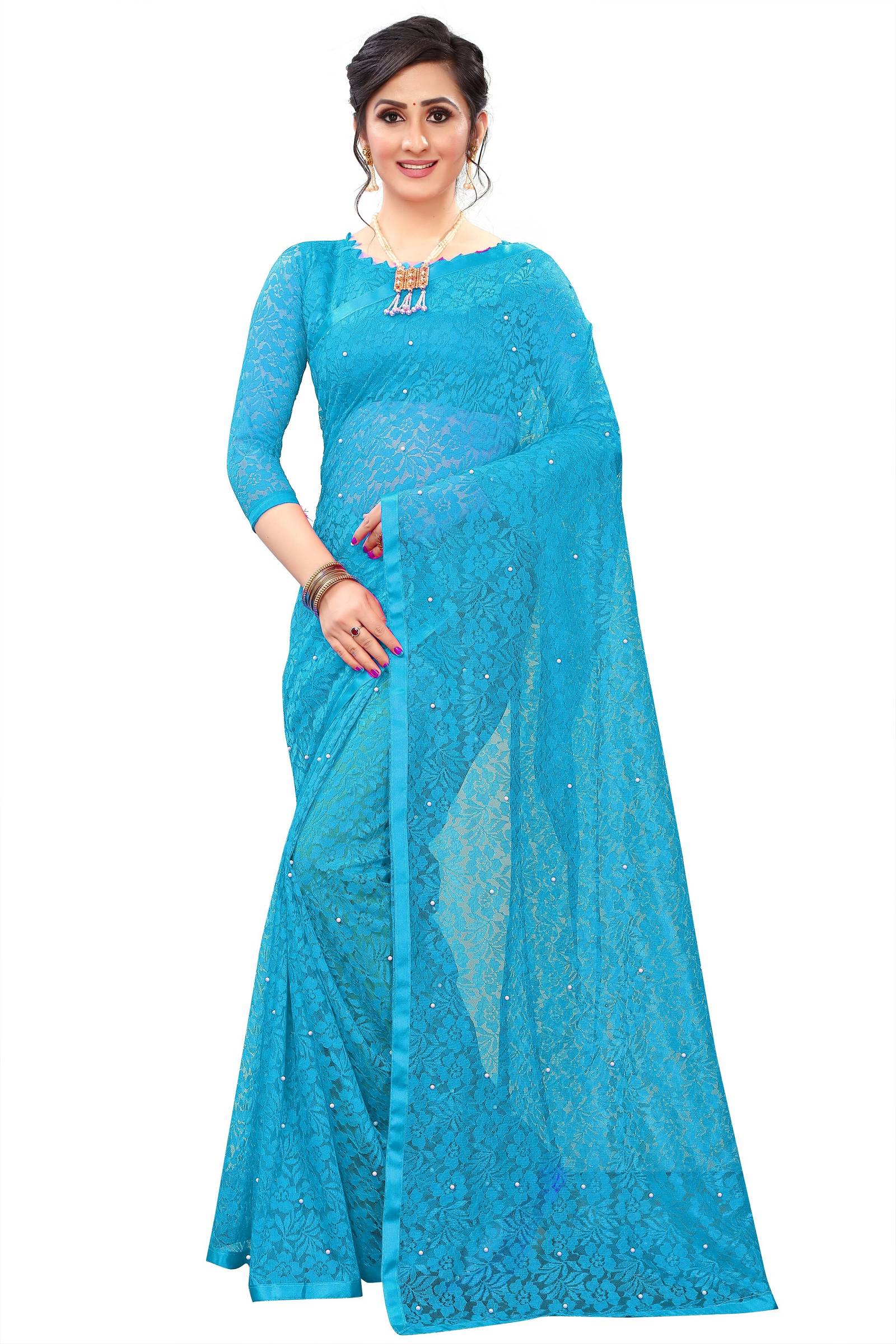 LOROFY Embellished Bollywood Net Saree (Blue)