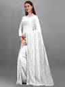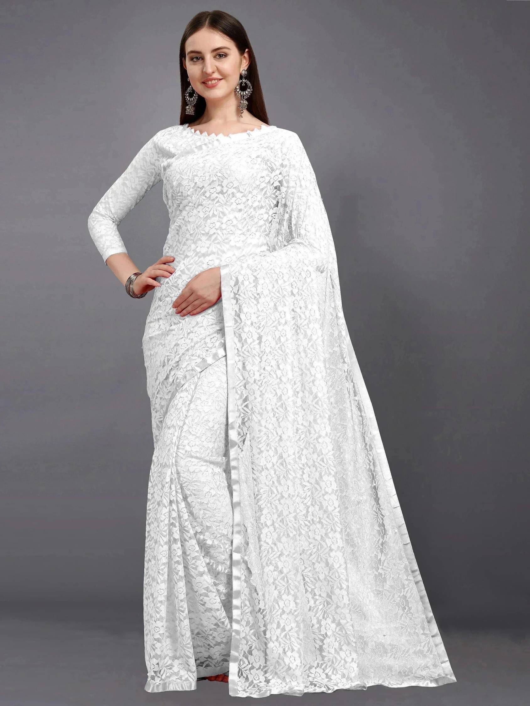 We bring Designer Jacquard Net Saree For Our Lovely Customers This Saree Made By High Export Quality Of Materials Saree Cloth Made By Soft Quality Cotton Materials Bringing Designer Machine Work Like Different Type Of Flowers On Saree With White Color Of Stone Work Saree 5.5 Meter With Complete Less Border Blouse 0.8 Meter Customers Can Stitched As Own Test With Pattern Give you perfect festival look in all the season and party
