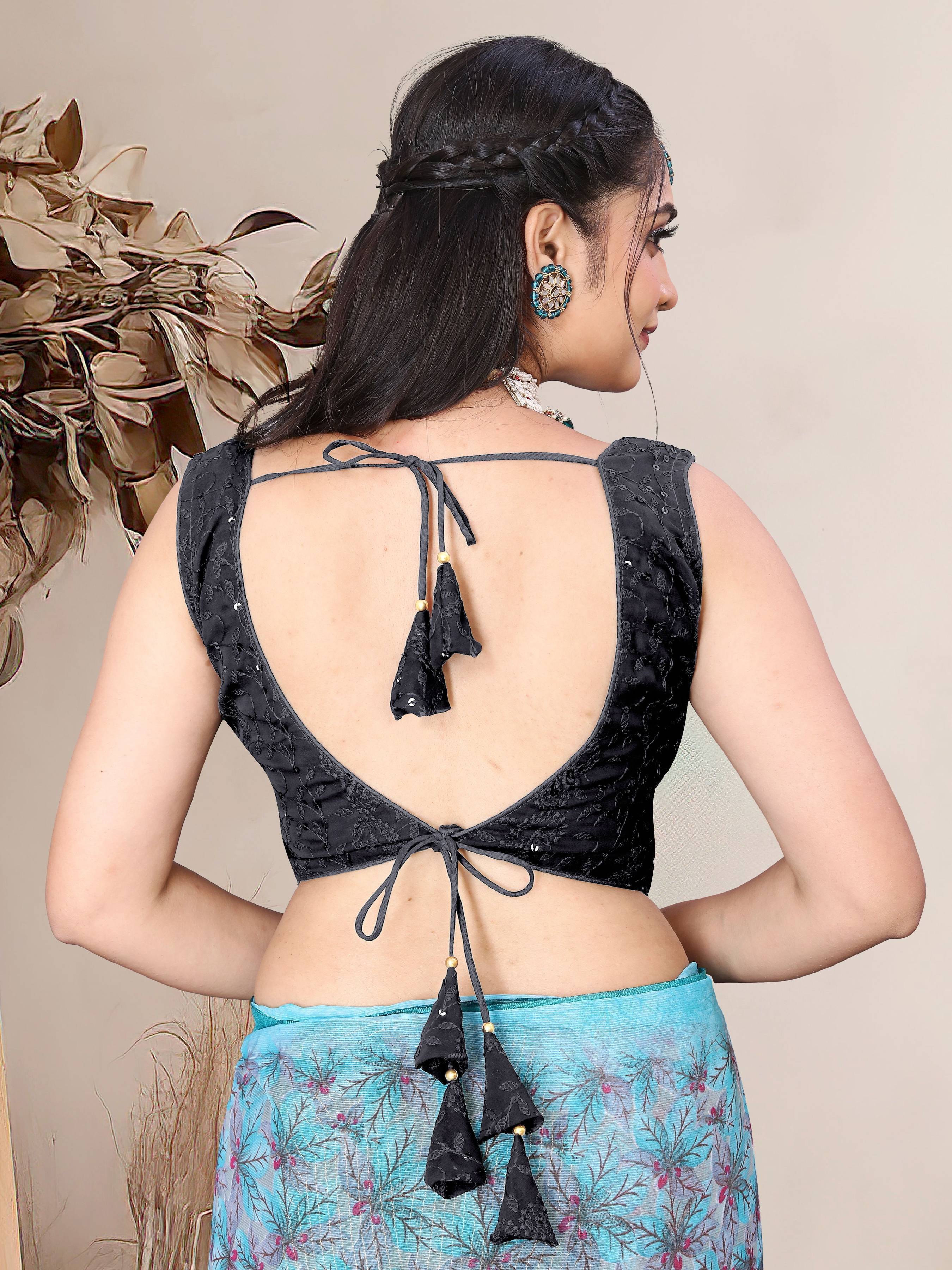 Fabric: Art Silk, Saree Length: 5.5 metres, Blouse Piece: 0.8 metres (Unstitched), Work / Design: Sparkling Beads & Stone Embroidery, Pattern: Plain Solid with Chic Finish, Occasion: Parties / Weddings / Festive Events, Package Includes: Saree + Blouse Piece