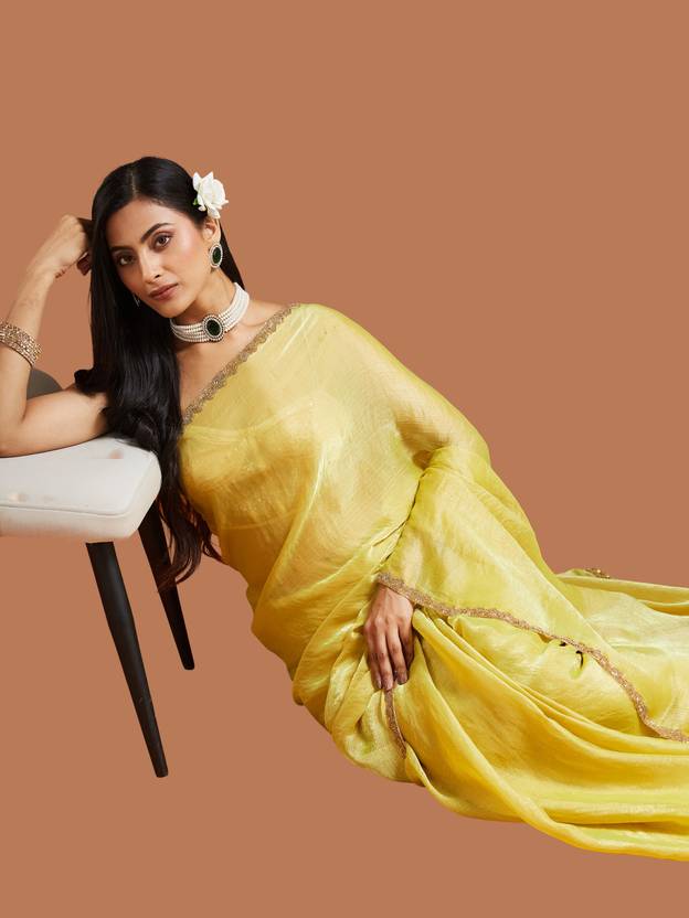 This tussar silk saree features a soft woven texture with a graceful border. It comes with 5.5 mtr saree length and 0.8 mtr unstitched blouse piece, perfect for party, festive and wedding wear.